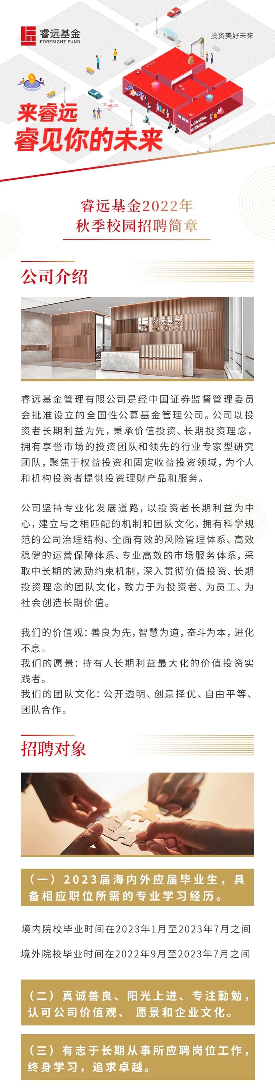 校园招聘 | 睿远基金2022年度秋季校园招聘
