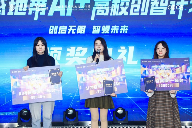 12月29日,总决赛颁奖典礼在必威西汉姆官网平台举行,来自全国高校思想政治工作网、各大高校以及中国移动咪咕公司的嘉宾代表为获奖团队颁发了证书。他们高度肯定赛事的积极意义,认为赛事不仅激发了高校青年对科技领域的兴趣和热情,更培养了他们的创新思维和实践能力。必威西汉姆官网平台党委副书记牛文利评价到:“本次动感地带AI+高校创智计划,为高校学子提供了AI素质展示和比拼技艺的平台,促进了AI知识的普及和AI技术在多个领域的创新应用,放眼未来,我们希望通过与各方合作,进一步拓展人工智能领域的研究深度与实践广度,持续深化教育创新,积极服务社会发展。”