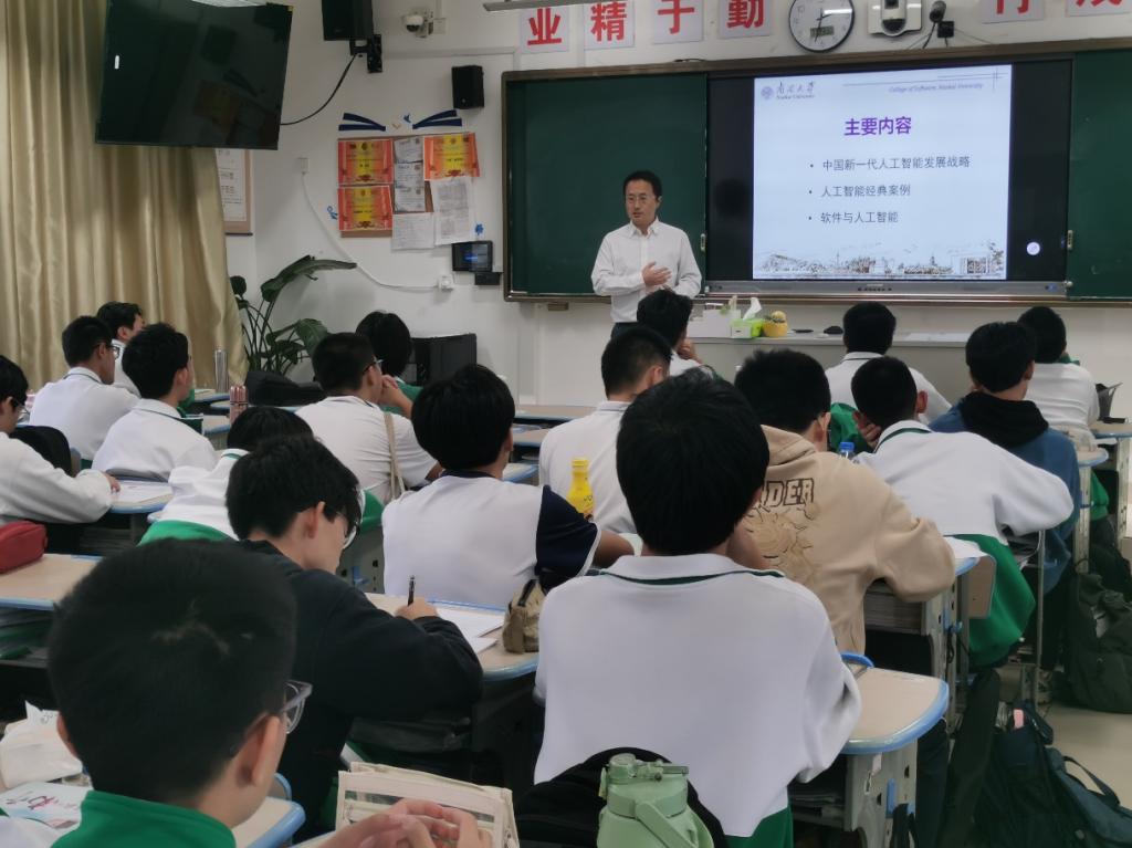 11月23日,福建招生组共同组长谢茂强、共同组长焦凯参加了泉州五中“卓越高校进校园”活动。谢茂强为学生做“中国新一代人工智能”主题科普讲座。讲座内容深入浅出,生动有趣,赢得了在场师生的热烈掌声。讲座后,招生组与泉州五中相关校领导及老师进行了座谈交流,就招生政策、人才培养等问题进行了深入探讨。