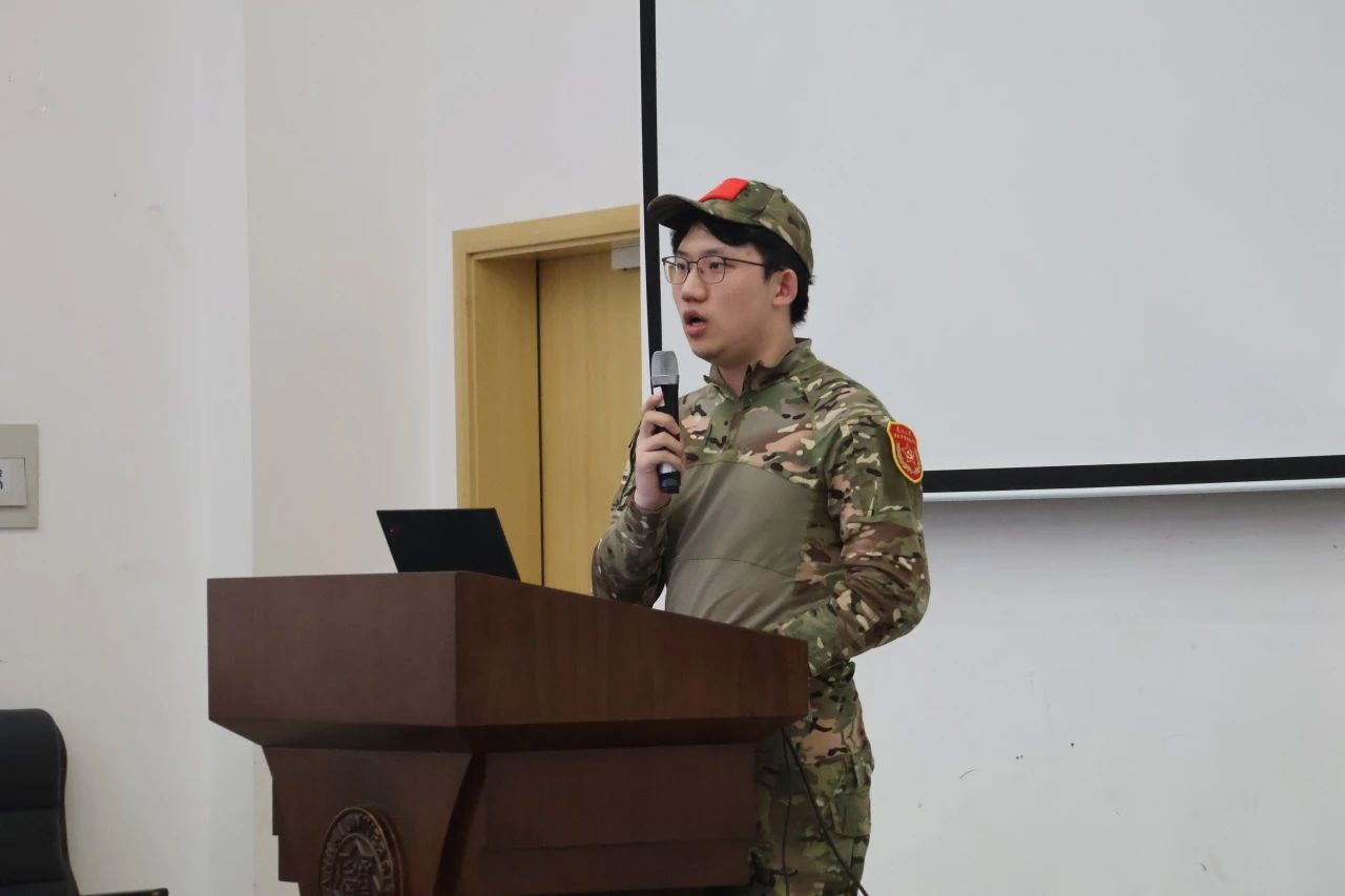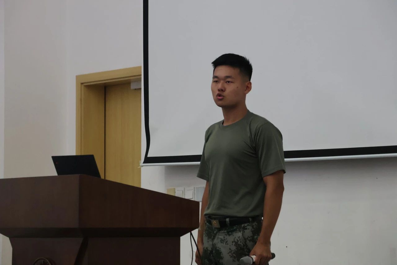 法茹克介绍了此次军训的基本情况和日程安排,细致强调了军容风纪、内务、训练场内外纪律要求等。法茹克强调,全连务必严格遵守纪律、服从指令。法茹克在会上指出,此次的军训也是作为爱国主义教育、国防教育的重要一环,因此需要同学们不能懈怠、认真对待。最后,为让同学们能更快的融入到军训生活,法茹克给学生详细解读了本次军训细则。