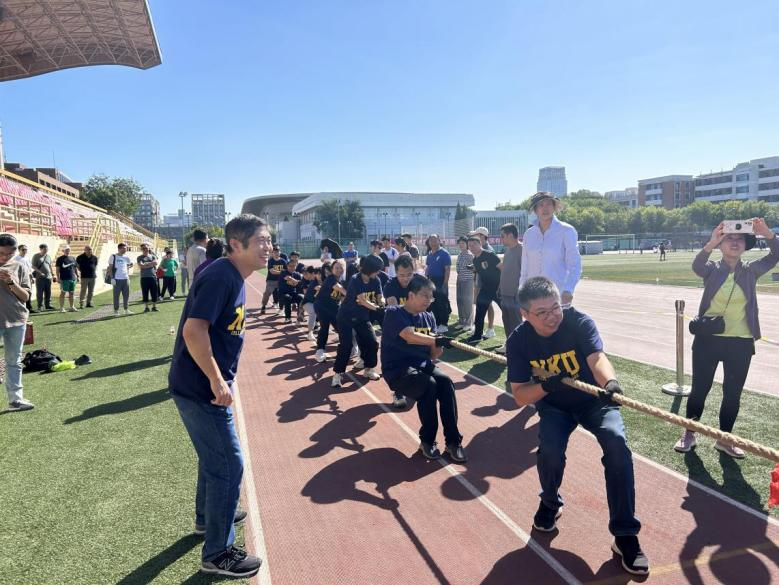 在团体比赛中,拔河粗绳连接的是团结和友谊,演绎的是奋斗与拼搏。老师们坚韧顽强、奋战到底,经过激烈的多轮角逐,最终,我院教师拔河荣获丙组第一的好成绩。
