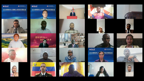 来自土耳其、莫桑比克、塞拉利昂、委内瑞拉、伊拉克等18个国家和地区的34位学员在其本国线上参加了仪式。仪式在庄严的国歌声中正式开始。