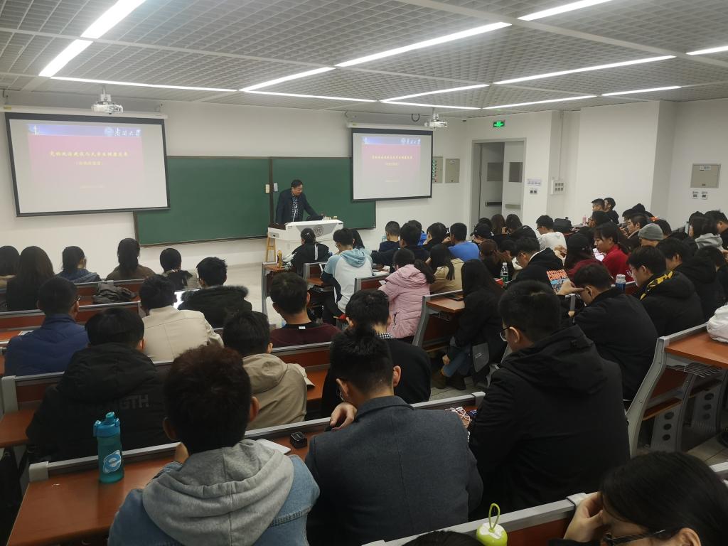首先,李义丹从中共一大讲起,带领同学们回顾中国共产党推翻资产阶级政权,建立无产阶级专政、实现共产主义的初心。随后,李义丹为同学们播放了《永远在路上》反腐纪录片,告诫同学们成为中共党员后,要严守党的纪律,遵守党的章程,在思想上有所警戒。接着,李义丹以“中美贸易战”、“香港暴乱”为例,指出中国之所以在应对艰难局面时稳如泰山,面对大是大非时坚定不移,其重要原因就在于始终坚决维护党的统一领导。最后,李义丹向学生提出三个问题:“中国的发展状况如何?”、“中国发展的潜力如何?”、“作为大学生应该如何定位自己的发展?”他提到,政治觉悟应从同学们在校期间认真学好公共政治理论课、关心国家时事热点这些小事中体现,由小到大,逐步定位好自己未来的发展方向。