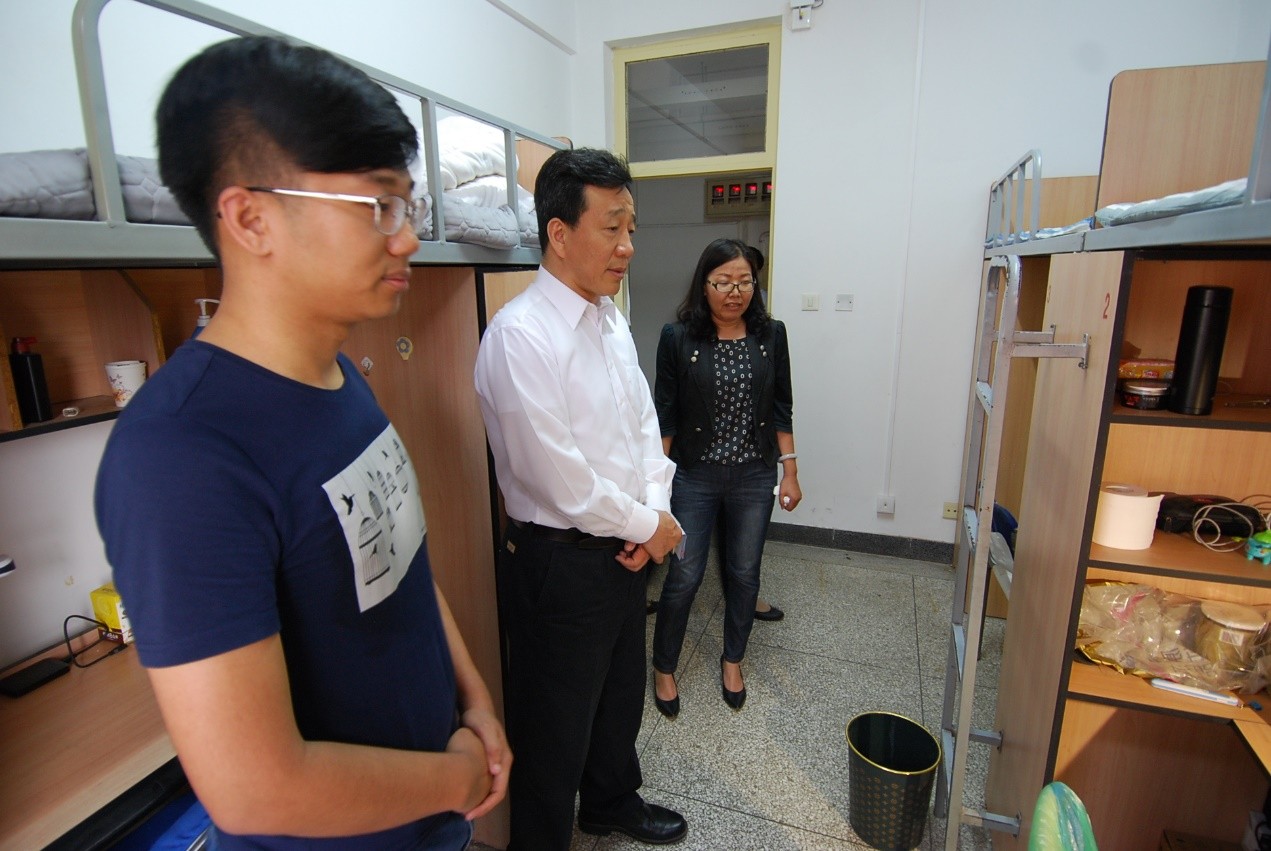 调研期间,杨庆山还考察了泰达学院教学条件及教学环境,并走访学生宿舍,与学生亲切交谈。