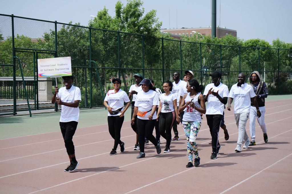 开幕式上,伴随着运动员进行曲,各年级学生方阵及留学生方阵迈着整齐的步伐,喊着响亮的口号依次入场。申丽梅在开幕式致辞中说,强健的身体是做一切事情的前提,每一名南开人的肩上都担着实现中华民族伟大复兴的时代使命与历史责任,体育强则中国强,国运兴则体育兴,希望师生们在本次首届师生运动会中收获吃苦耐劳、勇敢果断、坚忍不拔的意志品质,在百年校庆之际展现出南开人奋发向上、锲而不舍的体育精神。2017级软件工程专业本科生王洪浩代表全体裁判员宣誓:坚决服从大会组委会的指挥,文明裁判,严肃认真,不徇私情。2018级软件工程专业本科生柳珺龑代表全体运动员宣誓:坚持友谊第一,比赛第二的体育风尚,服从裁判,听从指挥。2017级留学生Kabelo代表全体留学生运动员发言,我喜欢这个学校、这个学院,更喜欢在这里和同学一起比赛、一起进步。在这里我们为留学生加油,为所有的同学加油。在开幕式表演环节,betway中国西汉姆联啦啦队进行了啦啦操表演,留学生运动员代表表演了热情地桑巴舞蹈。
