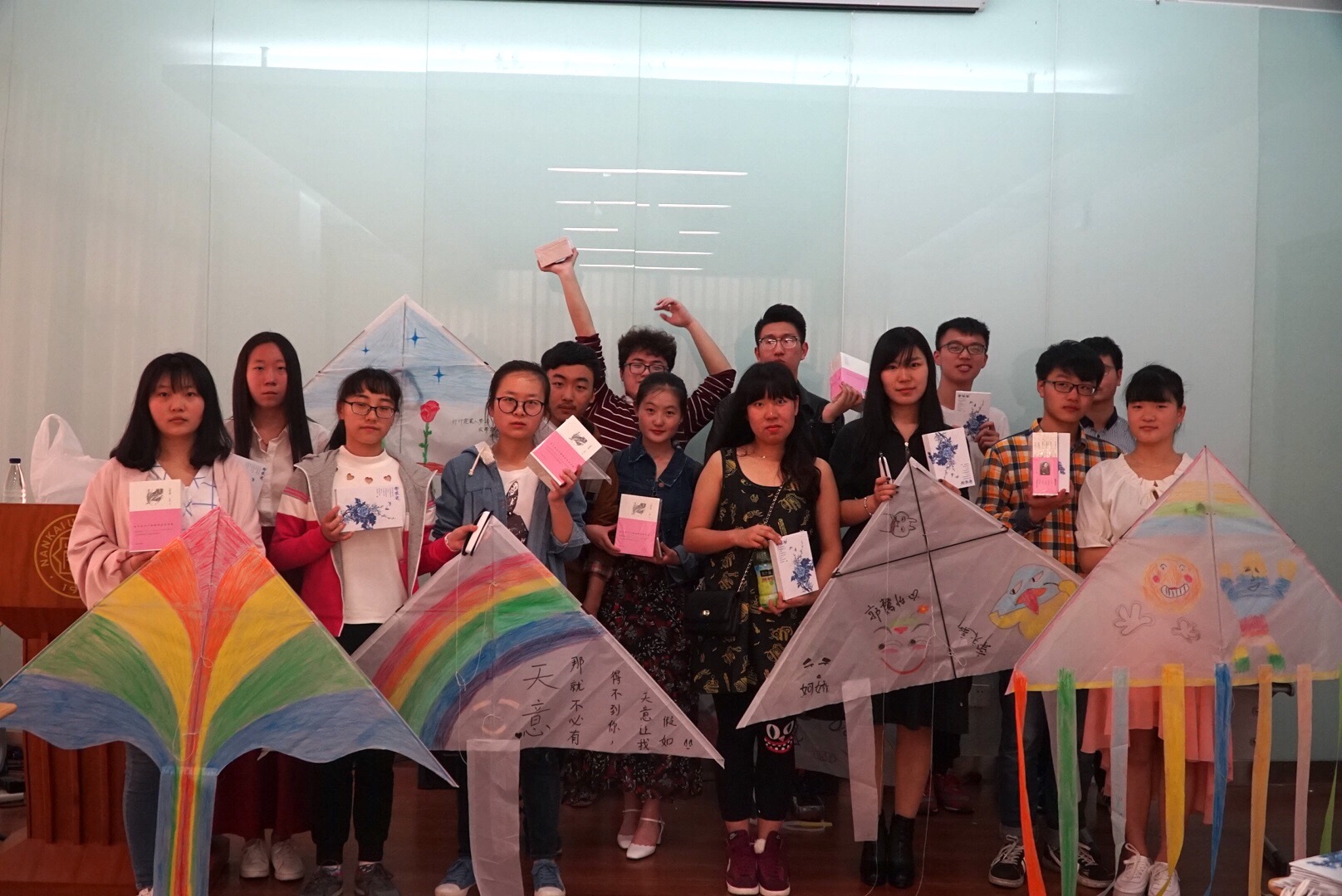 活动最后,同学们在操场上放飞风筝,放飞童心,也放飞了自己的青春。成功放飞风筝的同学还领到了主办方精心准备的礼品——席慕蓉诗集和古风书签一套。