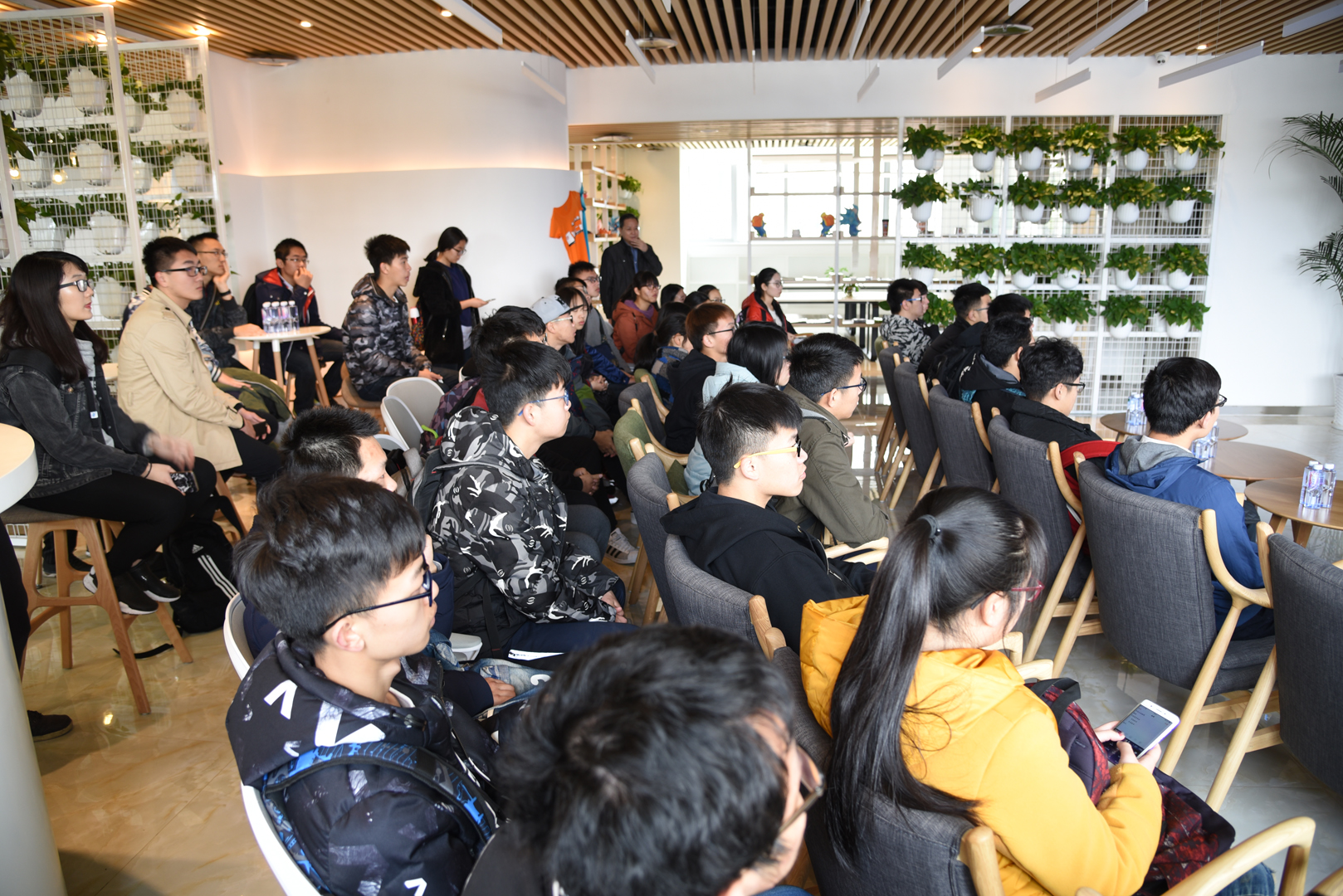 午后,学习队伍前往参观天津中科智能识别产业技术研究院有限公司。该公司由中国科学院自动化研究所与滨海新区政府共建,是自动化所优势学科海量信息智能处理的专业化产业基地。学生们在这里见识到了较为先进的机器视觉研究产品,并进行了亲身体验。