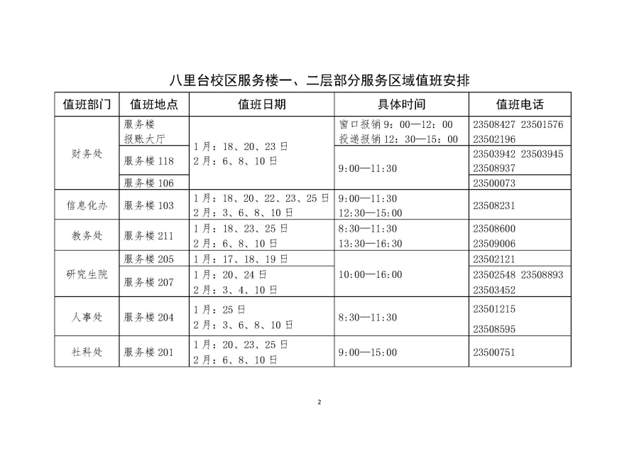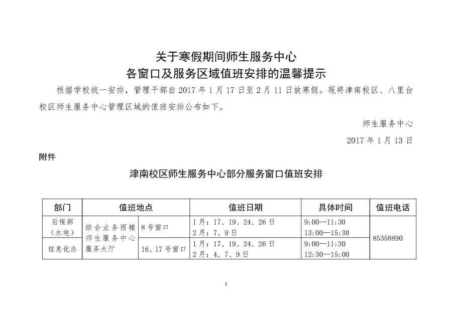 关于寒假期间师生服务中心各窗口及服务区域值班安排的温馨提示