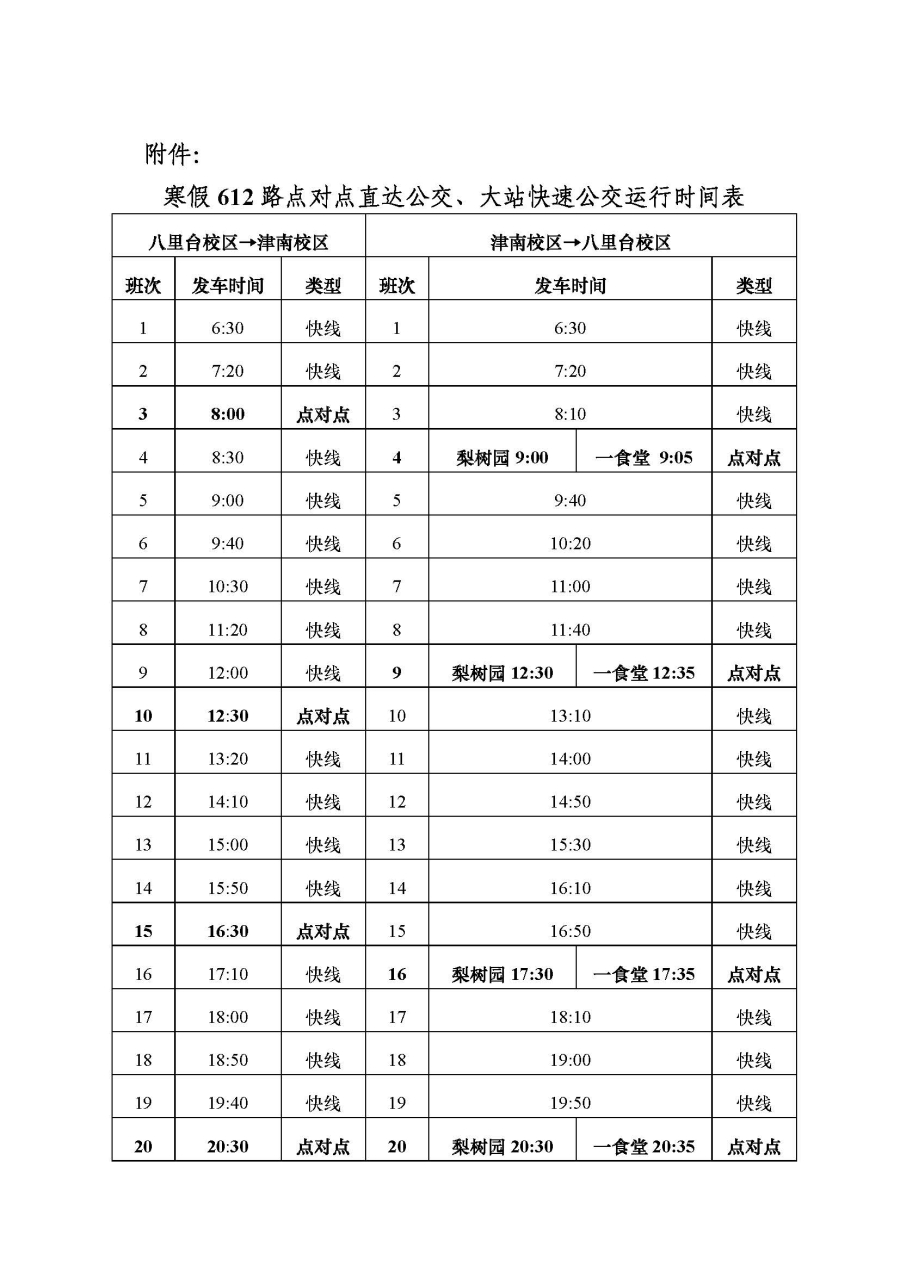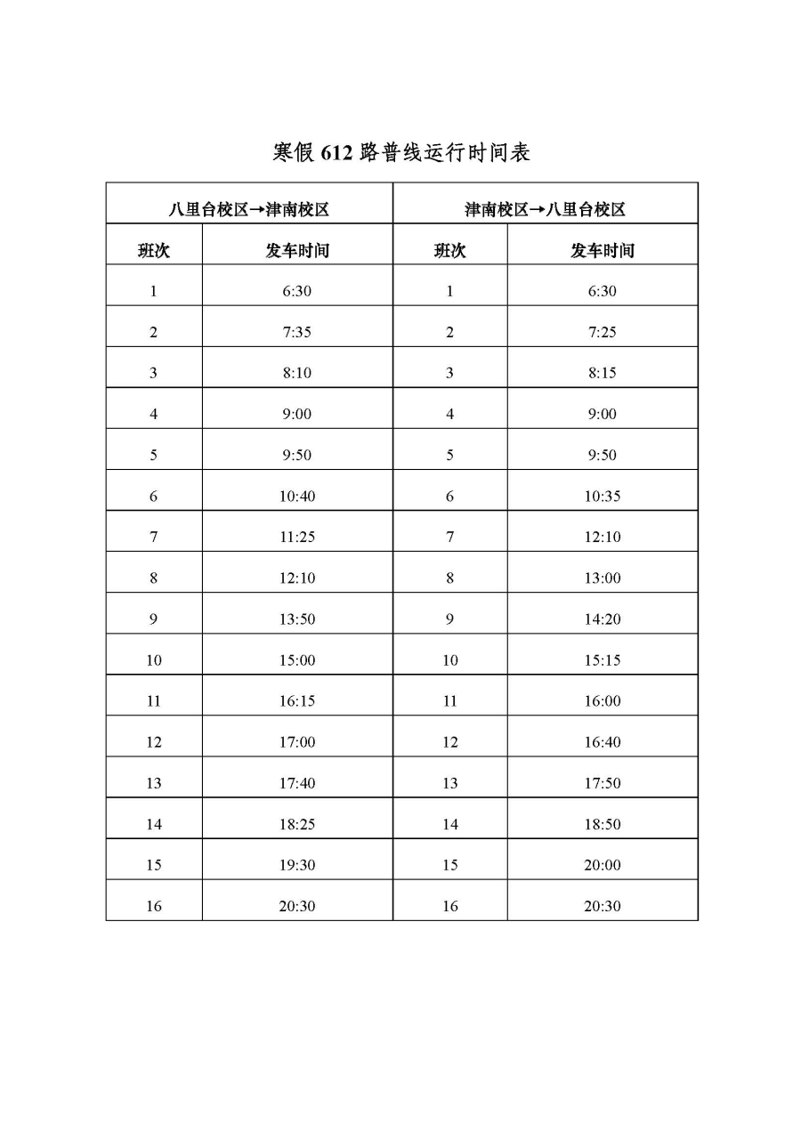 关于公布寒假校区间公交运行方案的通知