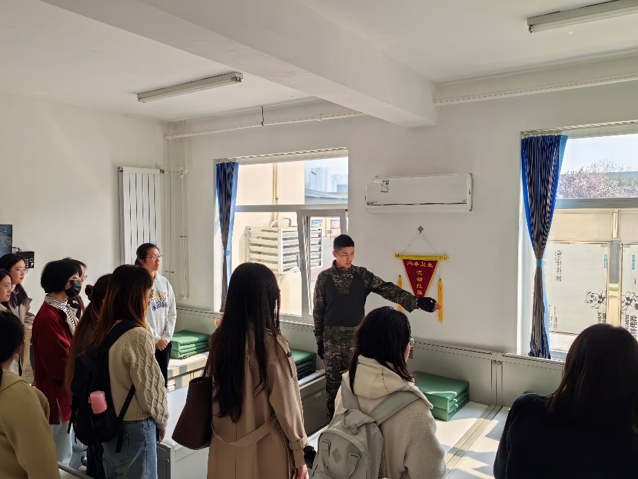 在武警战士引导下,师生参观了荣誉室、学习室、寝室、食堂、健身区等区域。进入寝室,映入眼帘的是一张张整洁如新的床铺和方正如“豆腐块”的被子。荣誉室陈列了战士们获得的一项项集体荣誉,师生不仅对武警战士的职责任务有了更为直观的认识,更被他们肩负的光荣使命和无私奉献精神所感染!