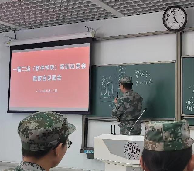 最后,指导员李彪作动员讲话,他再次强调军训的重要意义,指明军训不仅是一门重要的必修课程,也是磨炼意志、强健体魄,为未来学习生活打下坚实基础的良好契机,更是深入学习和践行我校爱国主义传统,展现新时代南开青年担当的生动实践。李彪还就军容风纪、身心健康、训练安全、饮食安全、网络安全、内务工作等方面提出了具体要求,要求同学们严格遵守军训纪律,确保与承训官兵密切配合,保持与指导员老师的畅通联系。会上还推选出军训副排长、各班班长。