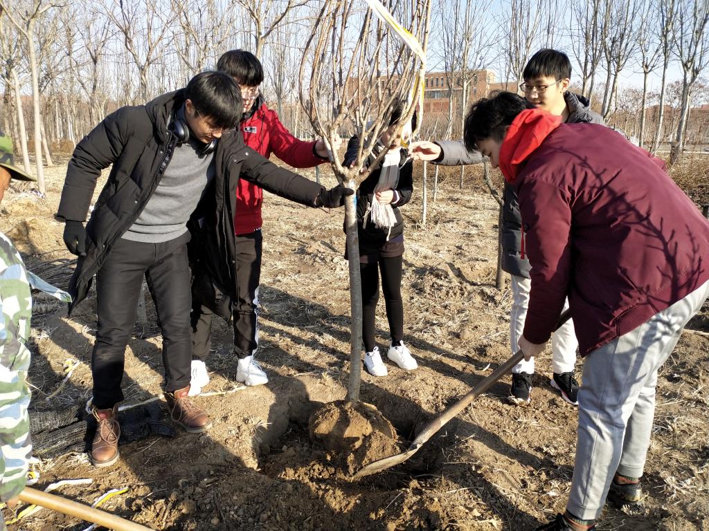 在后勤保障部相关科室负责人的统筹安排下,全体学生党员分为三组在不同区域开始劳动,对未开垦的田地进行翻土处理,协助工友对树木进行施肥与清除杂草,放置幼苗并进行培土,党员同学们在阳光下埋头苦干、人人争先,有的用手扶植树木,有的用锄头翻土,有的用工具清理杂草杂物。经过两个小时的努力,同学们虽然已是满头大汗、一身泥土,但看到劳动成果——种植成功的十七棵樱花树幼苗,每个人的脸上都露出了喜悦的笑容。