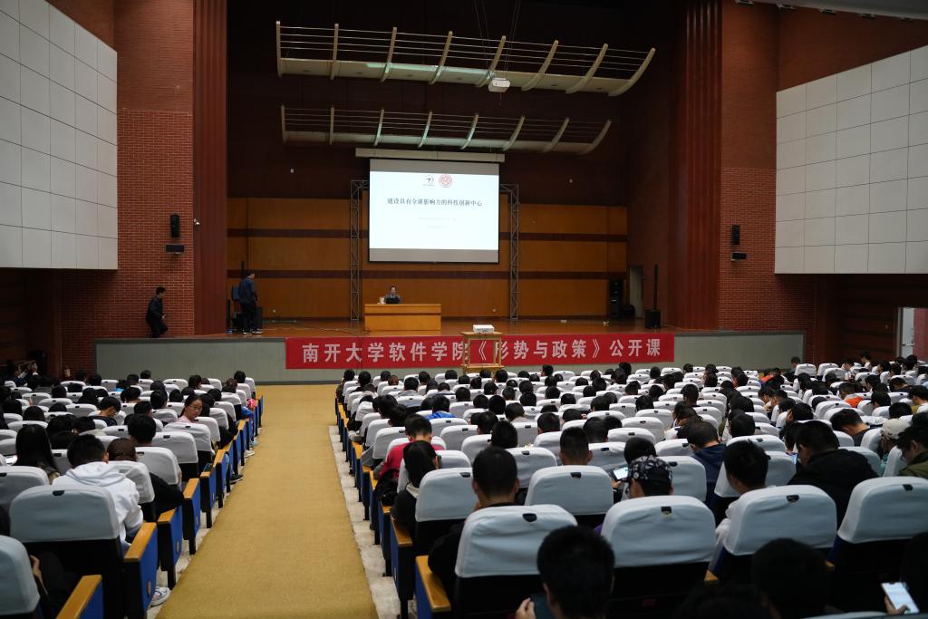 刘刚通过分析当下全球市值前十公司排行榜的案例,说明了紧跟革命浪潮、做工业革命的主导者对于经济发展的重要意义,引出“中国将势必主导第四次基于网络空间的工业革命”主要论断。他深入浅出地介绍了“VR技术对服装行业的冲击、电商发展对农村经济繁荣的促进、杭州智慧城市对城市安全的重大意义”等事例,向同学们引出“第二代基于大数据的人工智能”的概念,鼓励软件工程专业的同学们要利用北京天津的科技创新资源,完善自我,填补国家软件人才的空缺。他还向同学们展示了中国智能经济样本库的样本构成,中国智能科技产业的现状,中国智能经济网络的基本架构,中国智能技术的技术层次分布、应用领域及企业核心技术分布,用数据证明了中国正逐步主导世界智能经济发展。