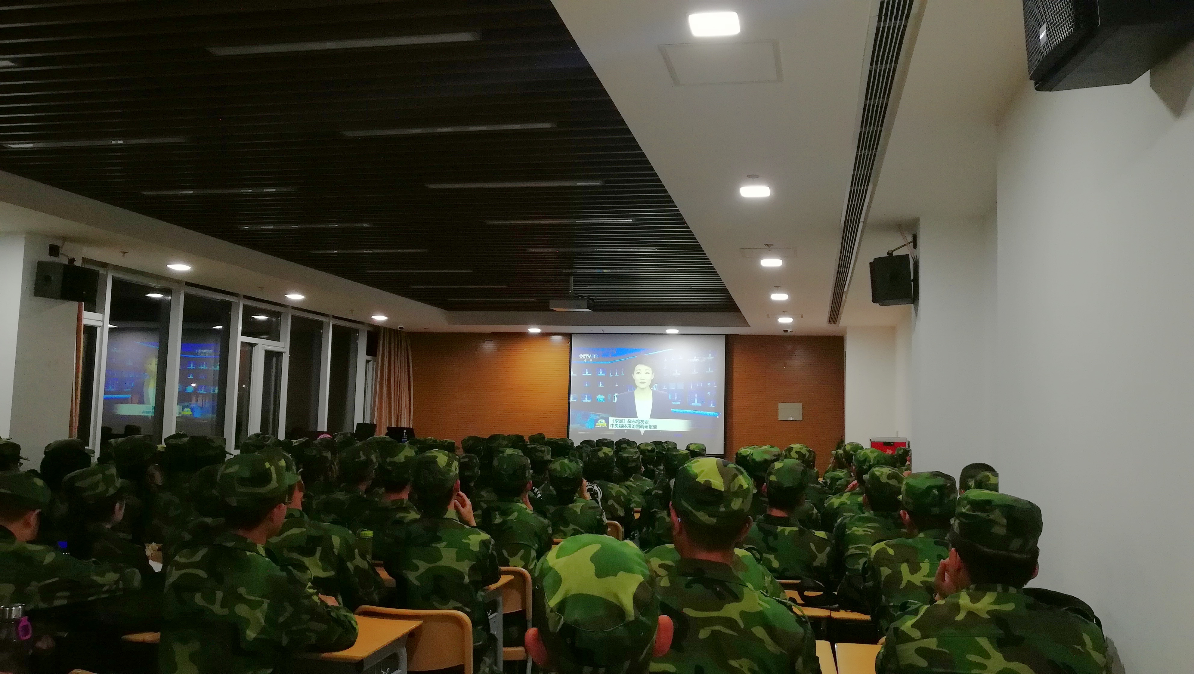 9月15日,恰逢全民国防教育日,必威西汉姆官网平台军训团二营十三连全体,汉、马、软三院200余名师生于马克思主义学院113教室集体观看《新闻联播》和《焦点访谈》节目,密切关注“2018-雷霆”专项行动,时刻警惕台谍大陆策反行动,借全民国防教育日契机,上好了国防安全的重要一课。